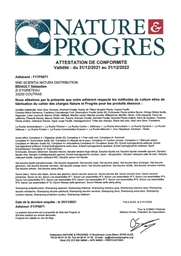 Certificat AGRICULTURE BIOLOGIQUE - ADELIA NATURE JEAN BOUTEILLE 31-03-2027